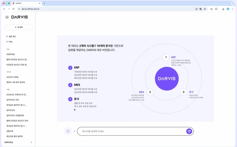 디피니트의 다비스(DARVIS)는 바로 이 '데이터 연결' 철학을 구현한 기업용 AI 플랫폼입니다. "실무는 빠르게, 리더는 정확하게" ROI를 만드는 전방위 AI 시스템입니다.