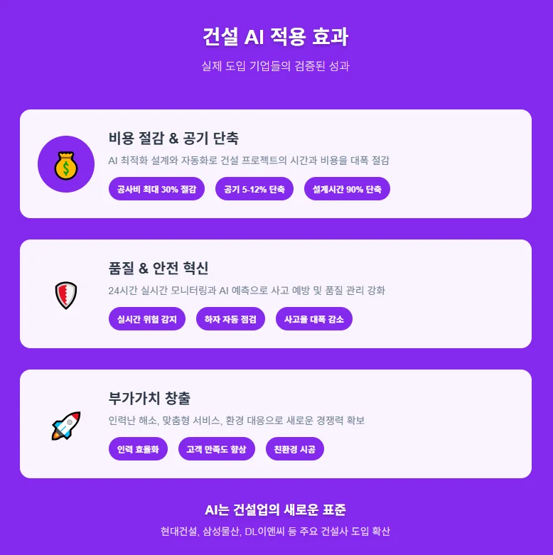 이런 AI 기술 도입으로 건설업계에 어떤 변화가 일어났을까요? 수치로 살펴보면 그 효과가 확실히 드러납니다.