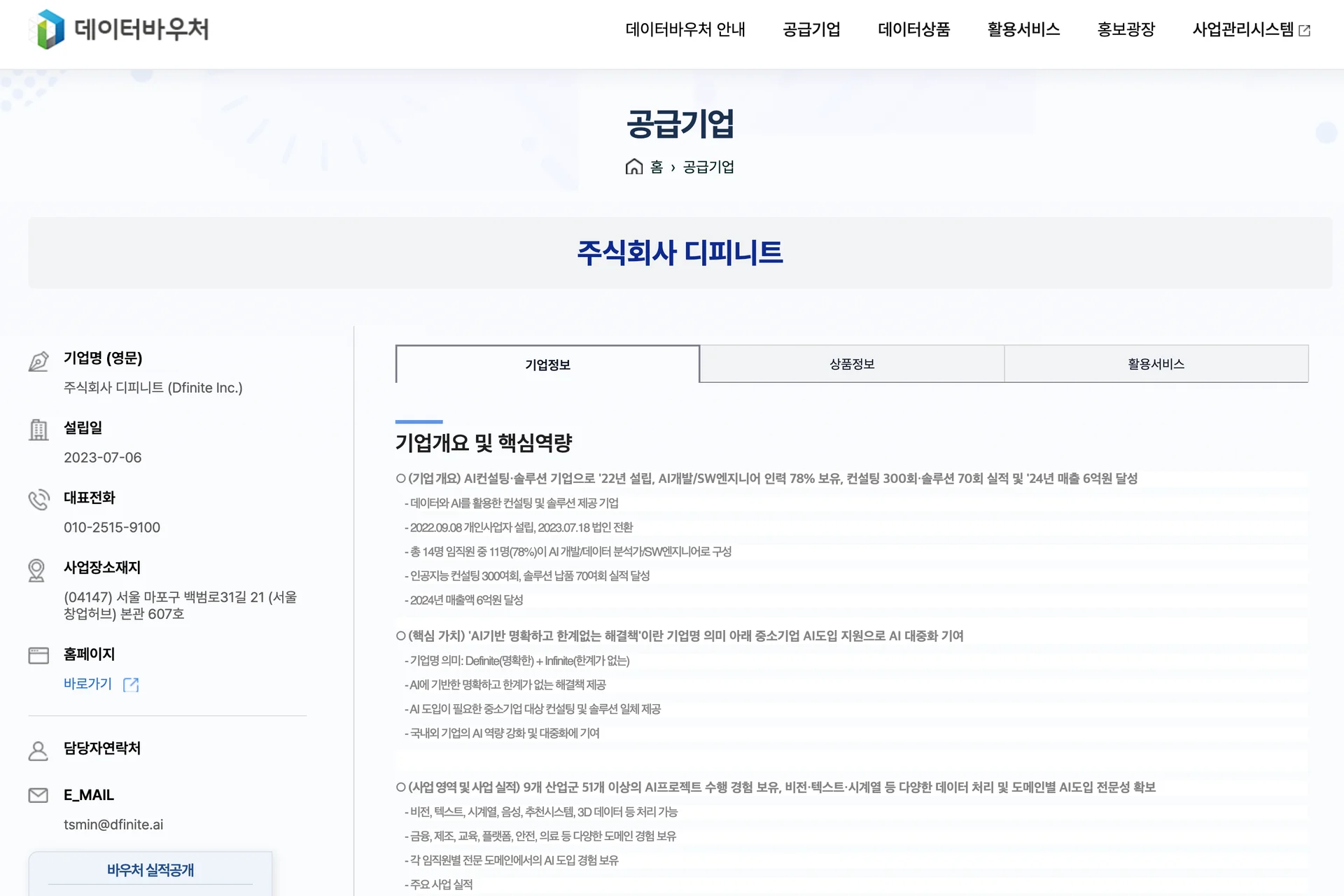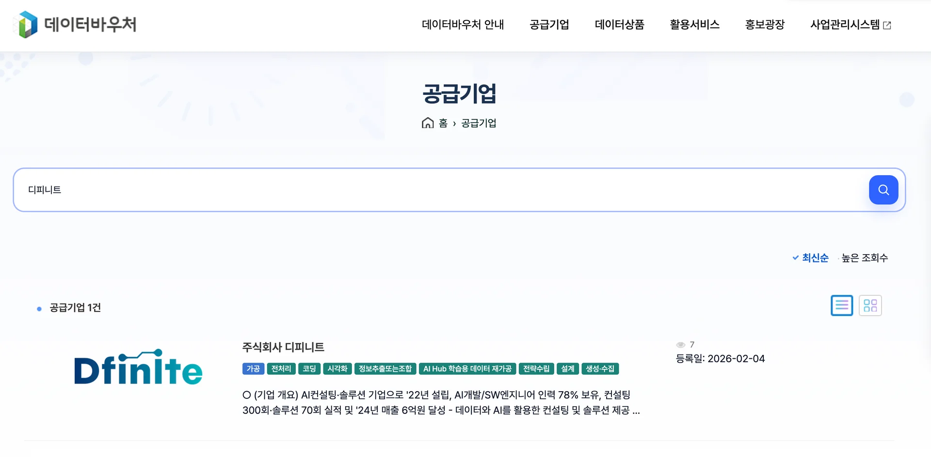 디피니트는 데이터바우처 사업의 공급기업으로 등록이 되어 있습니다.
