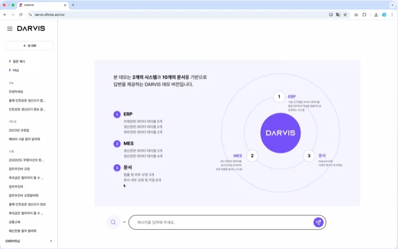 기존 시스템을 바꾸지 않아도 됩니다. 지능만 더하면 됩니다. 다비스(DARVIS)는 기존 ERP, 물류 시스템, 사내 문서를 그대로 두고 AI가 논리적으로 연결하는 방식으로, 평균 1.5개월이면 전사 적용이 가능합니다.