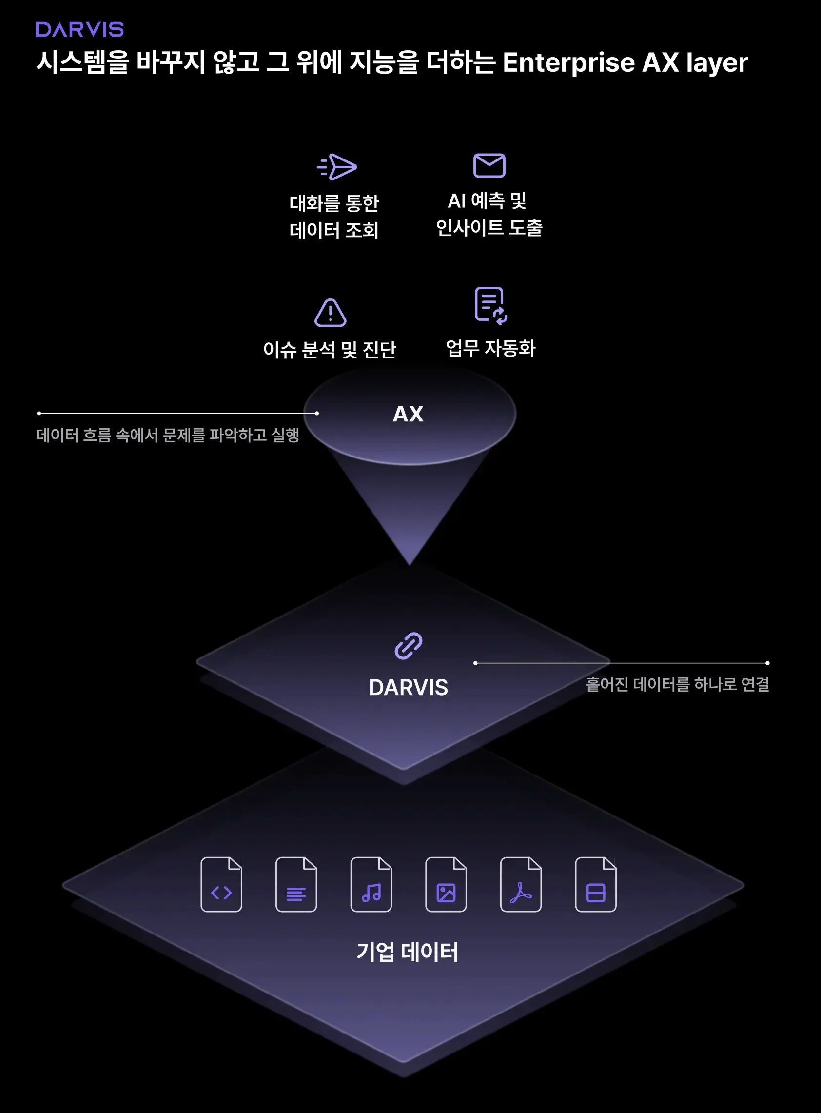 Enterprise AX Layer는 기존 시스템(ERP, MES, 그룹웨어)을 바꾸지 않고 그 위에 AI 레이어를 추가하는 디피니트만의 독특한 접근법입니다.