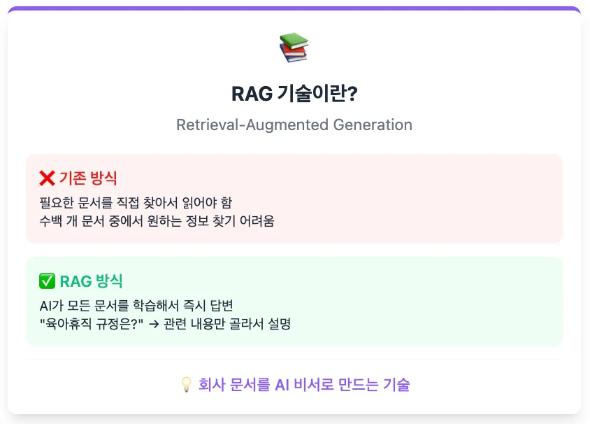 RAG 기술: AI가 수백 개 문서 중에서 정확한 내용을 찾아서 요약해서 답변