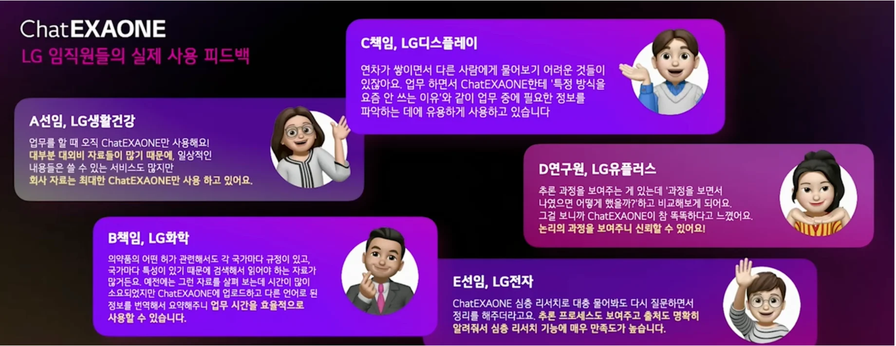 LG 임직원들의 피드백에서 흥미로운 패턴이 발견됩니다.