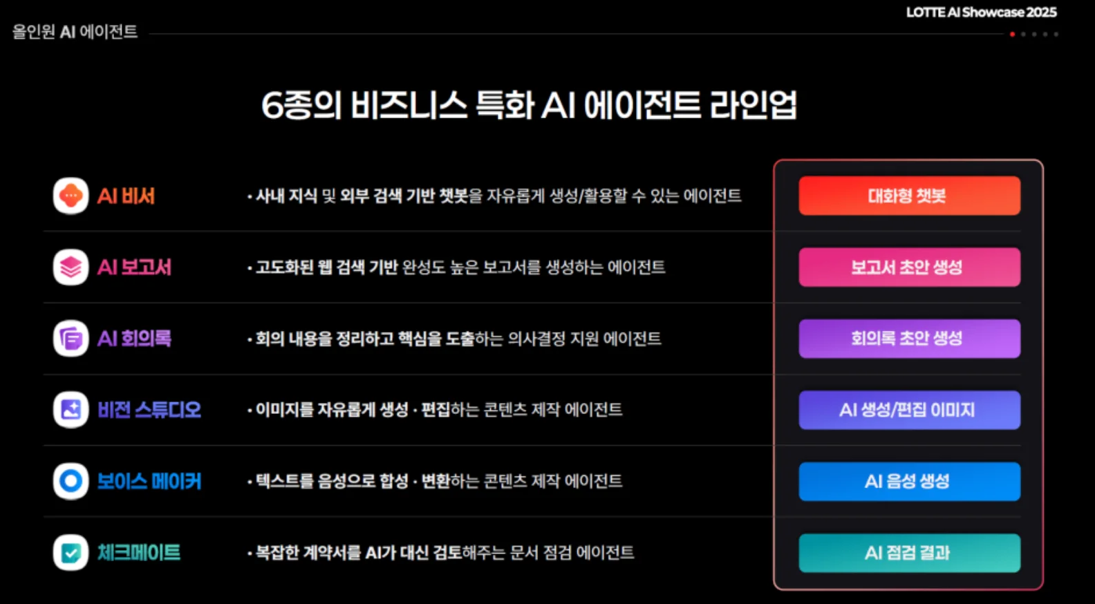롯데 아이멤버: 6종의 업무별 특화 에이전트