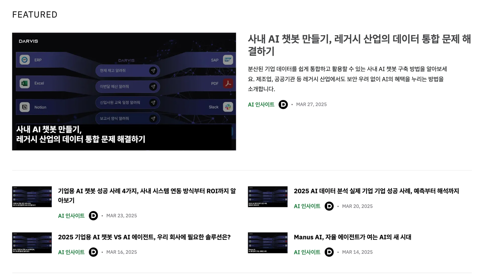 DARVIS 블로그에서는 매주 업데이트되는 AI 활용 노하우와 실제 사례를 통해 업무 생산성을 높이는 방법을 공유합니다.