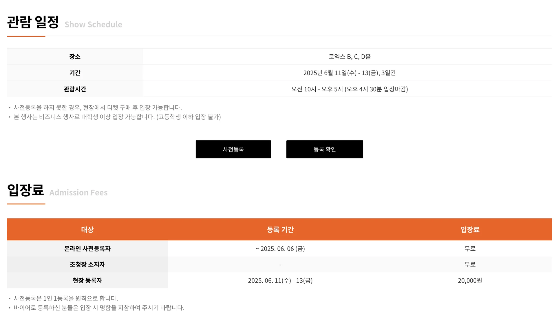 ⚠️ 현장등록을 하게 되면 2만원을 지불해야 하고, 별도 모바일 등록 과정을 거쳐야 합니다. 미리 사전등록을 완료하시는 것이 훨씬 편리합니다.
