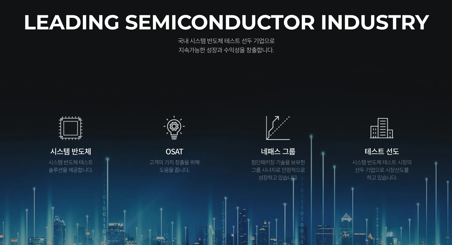 네패스아크는 충북 괴산에 위치한 국내 시스템 반도체 테스트 선도 기업입니다.
