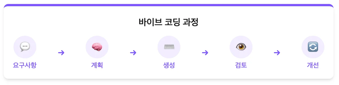 바이브 코딩의 핵심은 개발자가 코드 작성보다 문제 해결과 요구사항 정의에 더 집중할 수 있게 해준다는 점입니다. 단, AI가 생성한 코드를 그대로 사용하기보다는 검토와 수정 과정이 여전히 필요합니다.